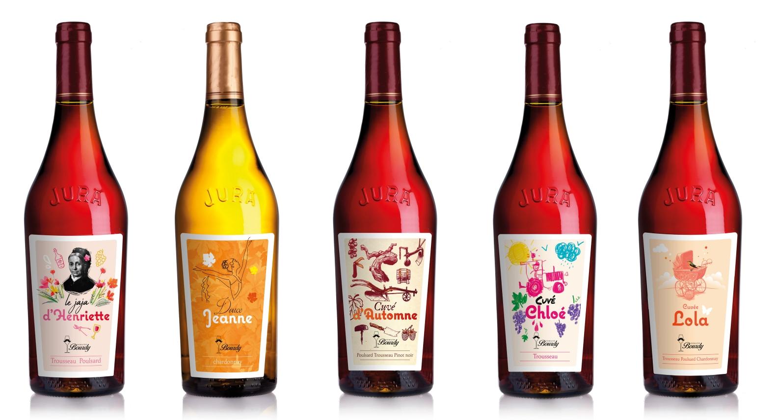 Depuis 1579, à Arlay, les Bourdy font du vin comme d’autres écrivent des romans : avec passion, patience… et une bonne dose de caractère jurassien. Seizième génération au compteur (oui, vous avez bien lu !), Laura Bourdy reprend le flambeau aux côtés de son père et de son oncle, dans un savant mélange de tradition et de transmission… Ici, le vin ne se fait pas à moitié : il se vinifie avec amour, respect du terroir… et sûrement quelques secrets bien gardés depuis le XVIe siècle.Chaque création graphique, chaque étiquette illustre un moment de vie du domaine Bourdy. Un clin d’œil à Henriette, la filleule au caractère bien trempé, ou un hommage tout en tendresse à la naissance de Jade et Chloé… Il fallait trouver le bon design graphique qui correspond au tempérament de chacun. Plus que de simples étiquettes, des tranches de vie du Domaine Bourdy.
